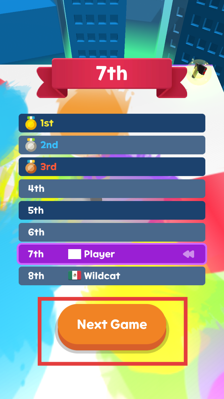 4、每局游戲結(jié)束后,會(huì)顯示玩家的排名情況若想繼續(xù)挑戰(zhàn),點(diǎn)擊Next Game按鈕,進(jìn)入下一局游戲,爭(zhēng)取獲得更好的排名,體驗(yàn)更多色彩涂鴉的樂(lè)趣。