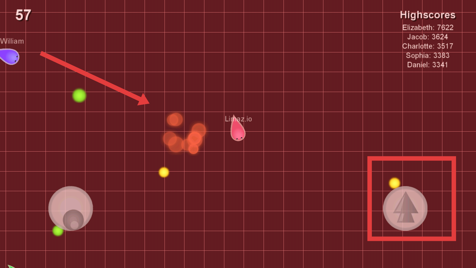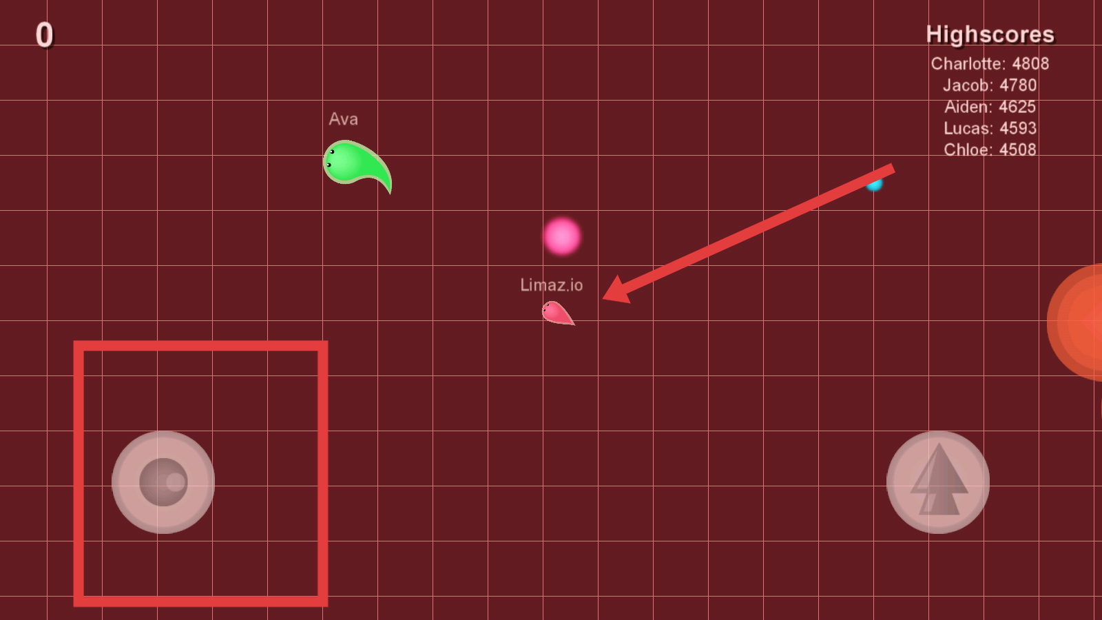 2、進(jìn)入游戲后,通過(guò)屏幕左側(cè)的圓形虛擬搖桿,滑動(dòng)手指來(lái)操控自己的蛞蝓角色在網(wǎng)格狀的游戲場(chǎng)景中移動(dòng),調(diào)整位置以獲取資源或躲避敵人。