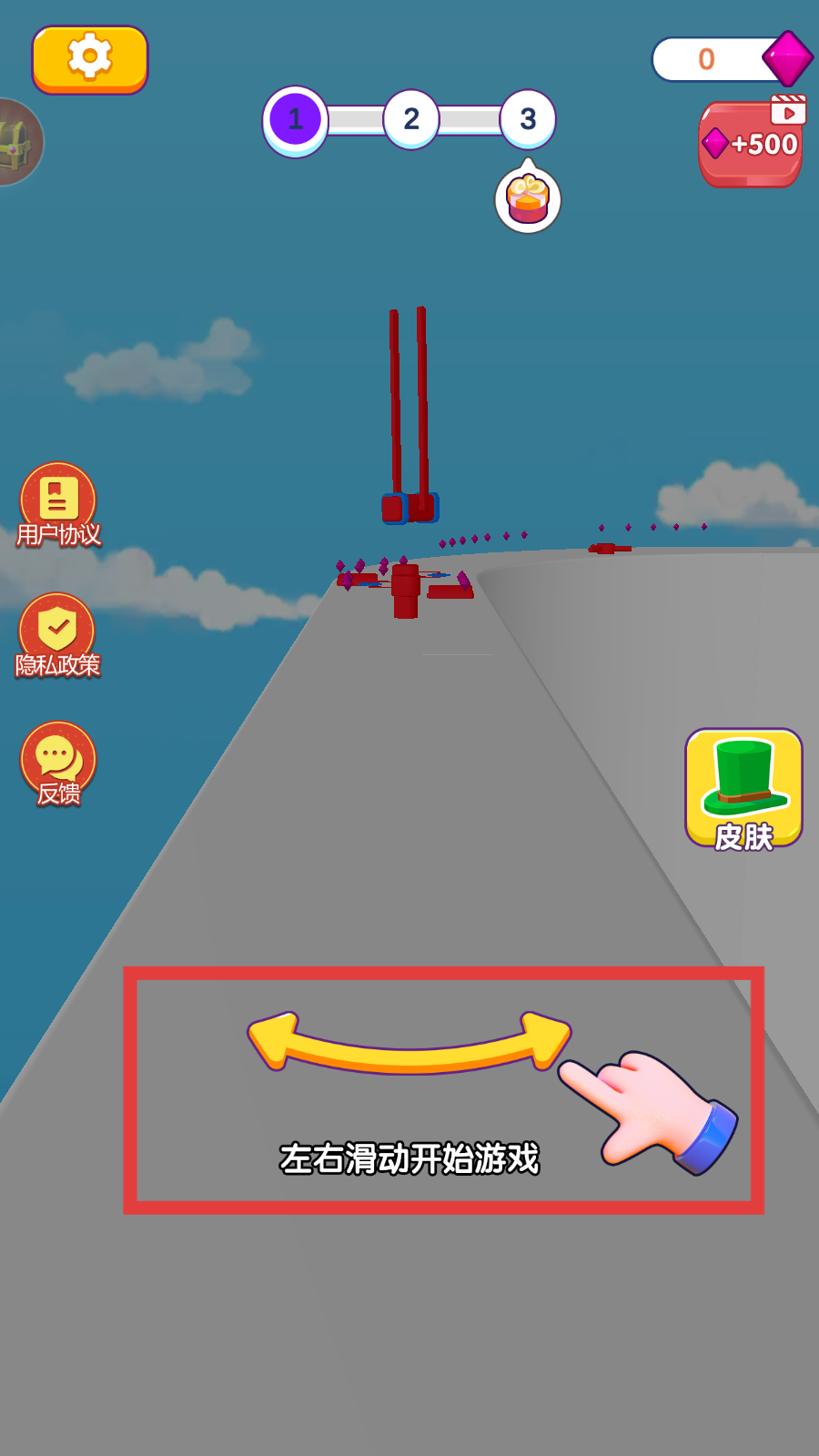 1、玩家下載游戲之后然后點(diǎn)擊進(jìn)入,在游戲主界面,按照提示左右滑動(dòng),即可進(jìn)入游戲關(guān)卡,操控果凍人開始游戲。