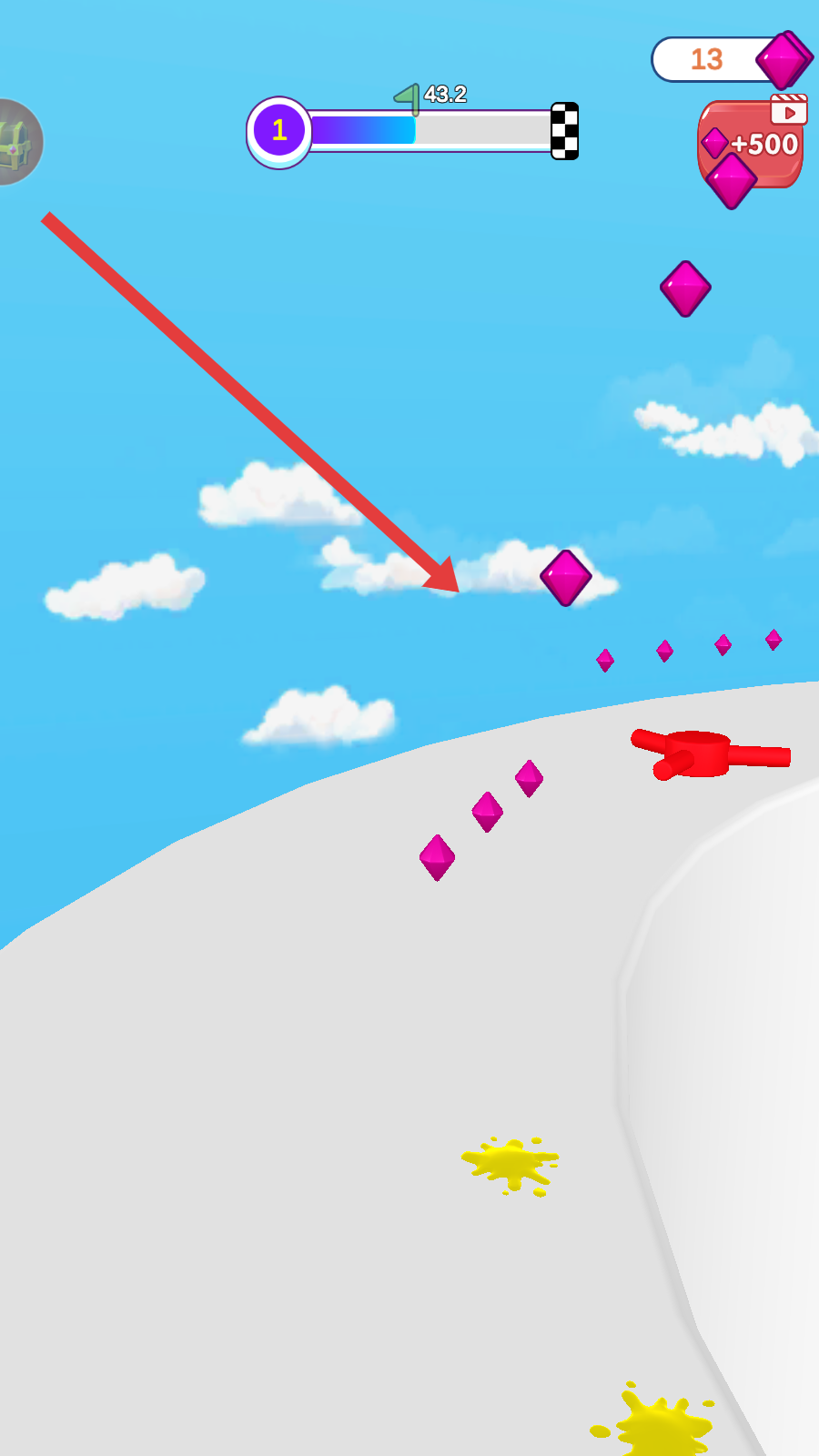 2、在賽道上移動(dòng)時(shí),操控果凍人收集散落在賽道上的紫色鉆石,鉆石可以用于解鎖新皮膚或其他獎(jiǎng)勵(lì)。