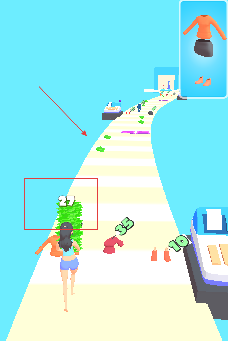 2、在賽道上移動(dòng)時(shí),操控角色收集散落在賽道上的綠色金錢,收集的金錢數(shù)量會(huì)實(shí)時(shí)顯示,積累金錢可用于后續(xù)購(gòu)買服飾等物品。