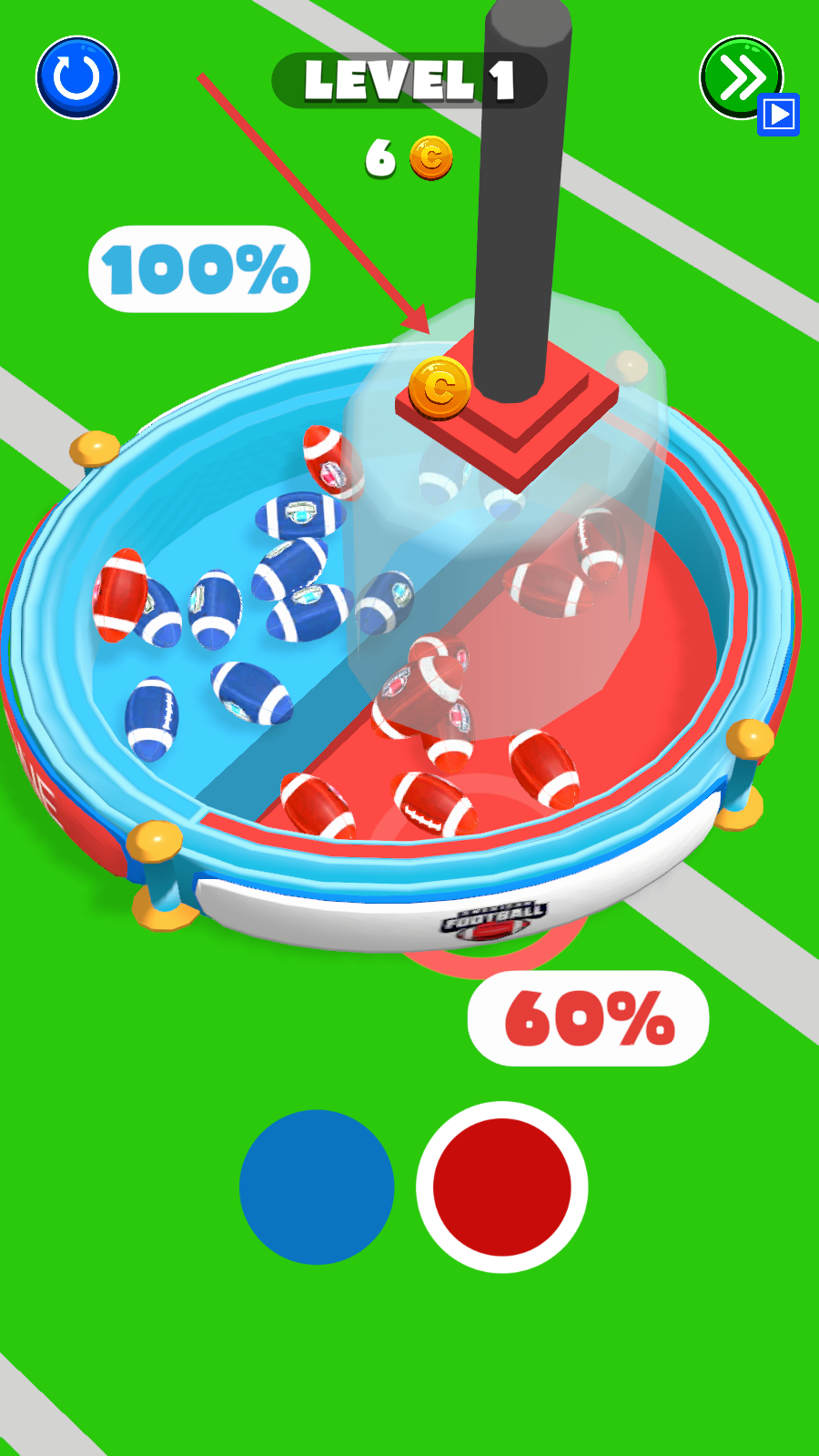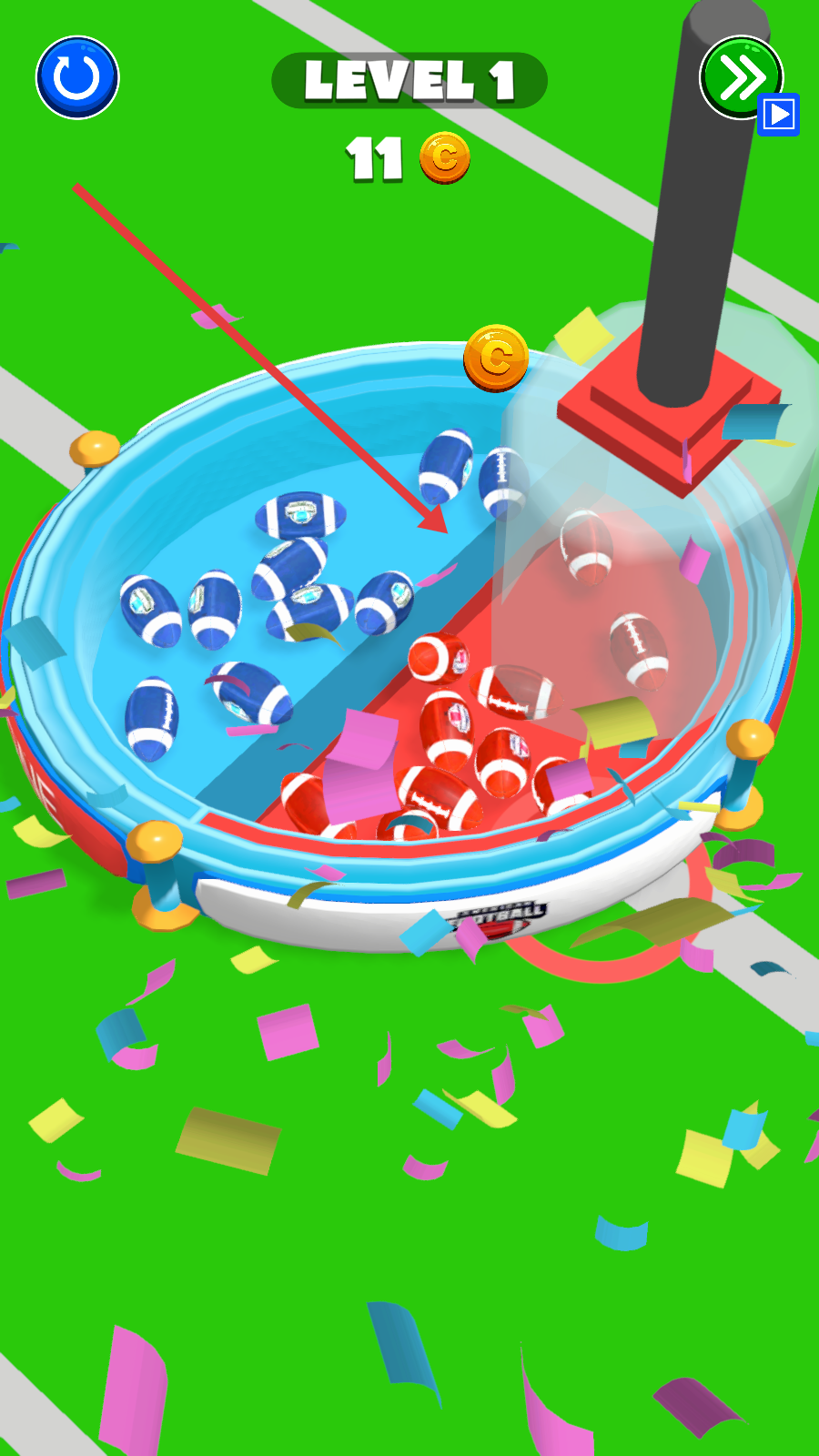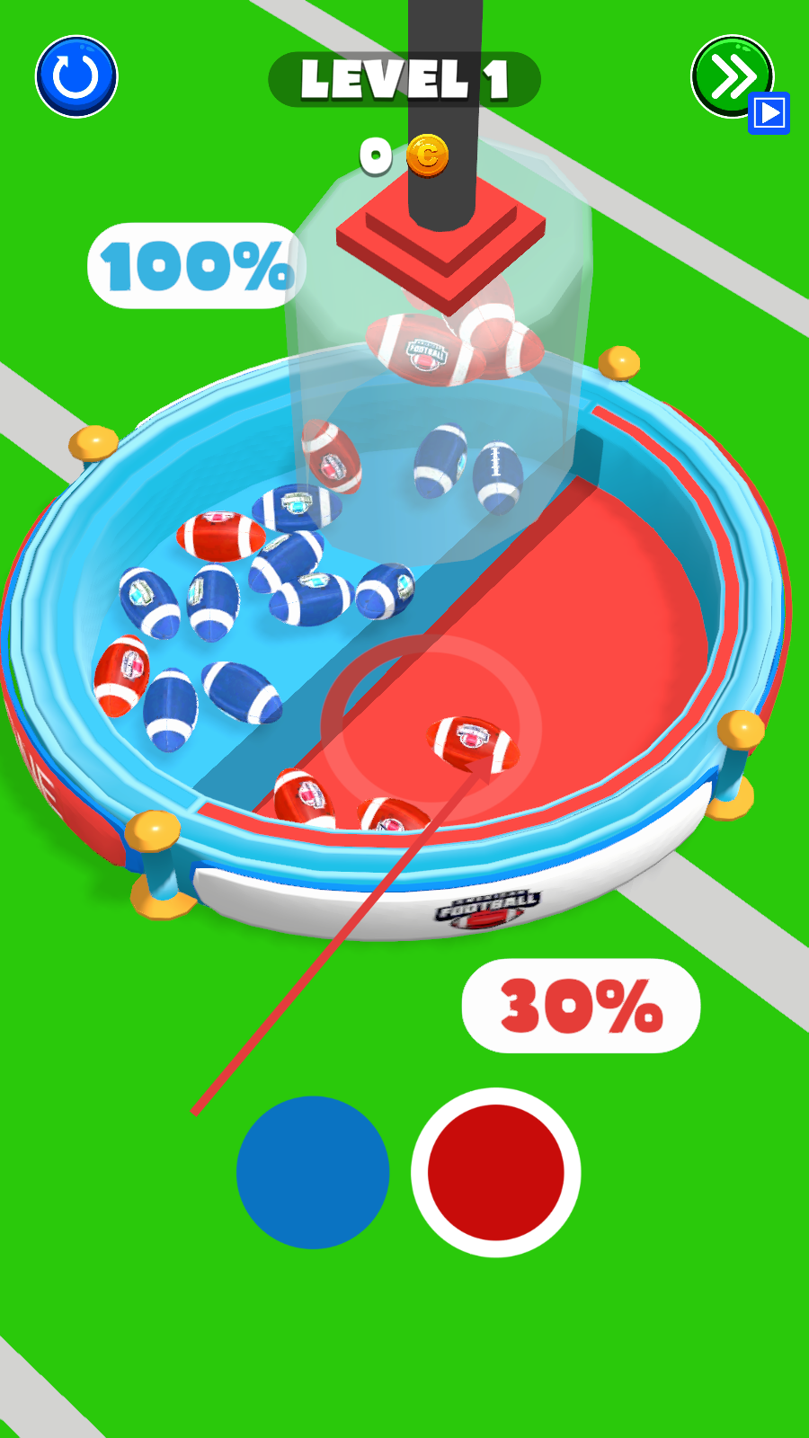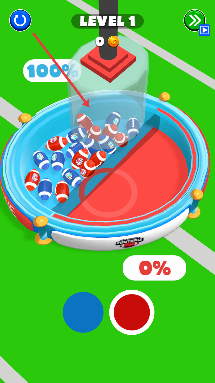 4、持續(xù)將橄欖球按顏色分類,當(dāng)達(dá)到一定的分類完成度如從0逐步提升到更高比例,并收集足夠金幣后,即可完成關(guān)卡。