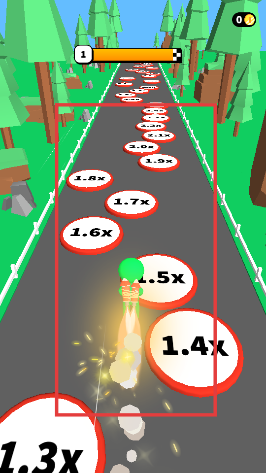 3、賽道上有帶倍數(shù)的圓形區(qū)域,讓角色落在這些區(qū)域上,能獲得倍數(shù)加成,提升分?jǐn)?shù),助力沖刺更高排名。