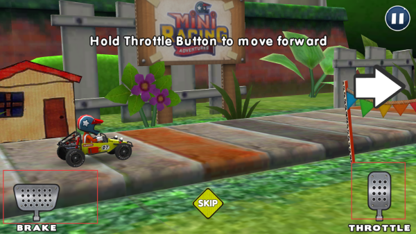 1、玩家下載進入點擊并按住屏幕右下角的THROTTLE油門按鈕,讓迷你賽車向前移動,開始在越野賽道上行駛。