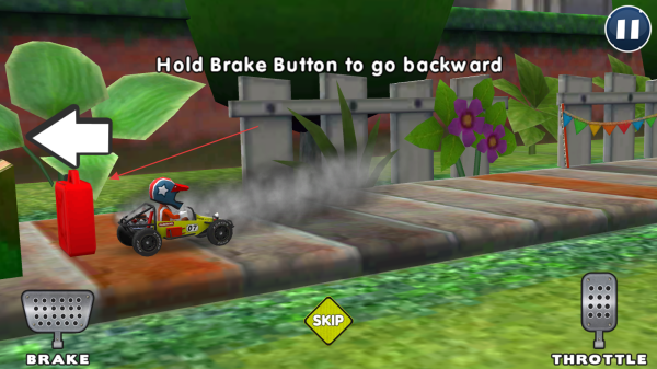 2、當需要倒車時,點擊屏幕左下角的BRAKE剎車按鈕獲得汽油桶,同時配合方向操作來調整賽車位置,以便應對復雜的賽道情況。