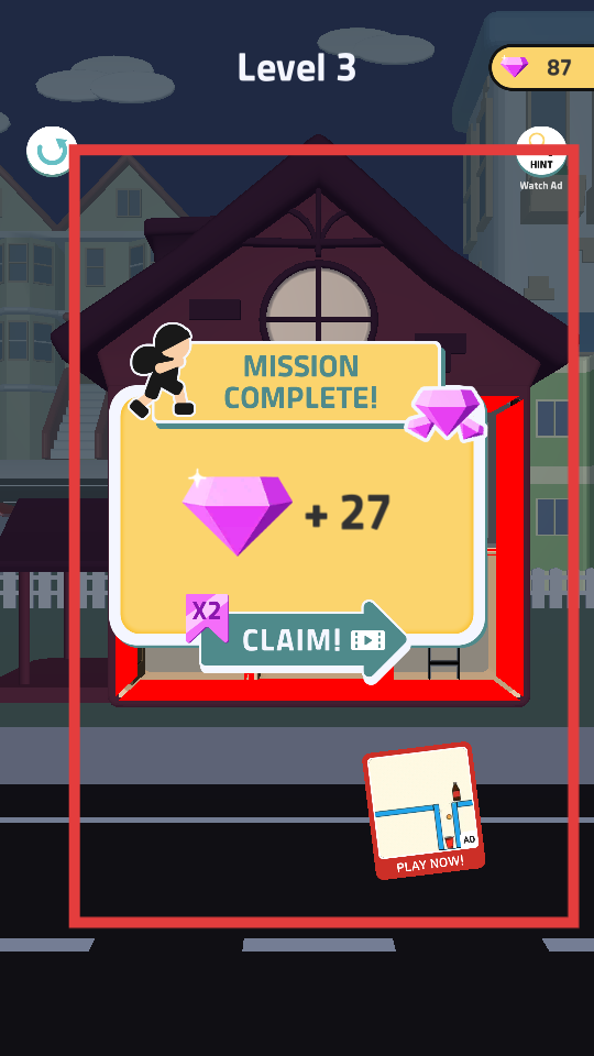 4、成功拿到鉆石后,會出現(xiàn)MISSION COMPLETE的提示,還能獲得鉆石獎勵,點擊CLAIM可領(lǐng)取獎勵,之后可繼續(xù)挑戰(zhàn)。