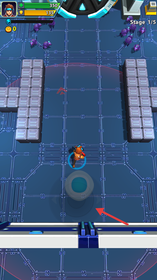 1、進(jìn)入關(guān)卡后操控角色在場(chǎng)地中移動(dòng),留意周圍出現(xiàn)的紫色老鼠敵人,提前規(guī)劃移動(dòng)路線準(zhǔn)備迎接戰(zhàn)斗,同時(shí)注意自身血量和能量狀態(tài)。