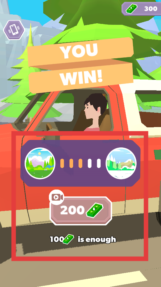 4、成功完成汽車相關(guān)任務(wù)后,會顯示YOU WIN,此時可獲得獎勵,還能選擇繼續(xù)游戲的相關(guān)選項,開啟下一段游戲內(nèi)容。