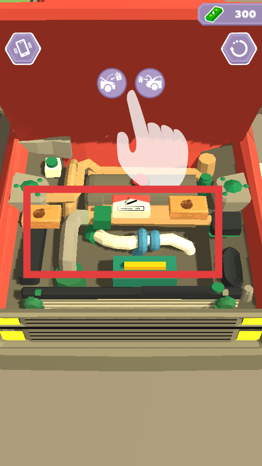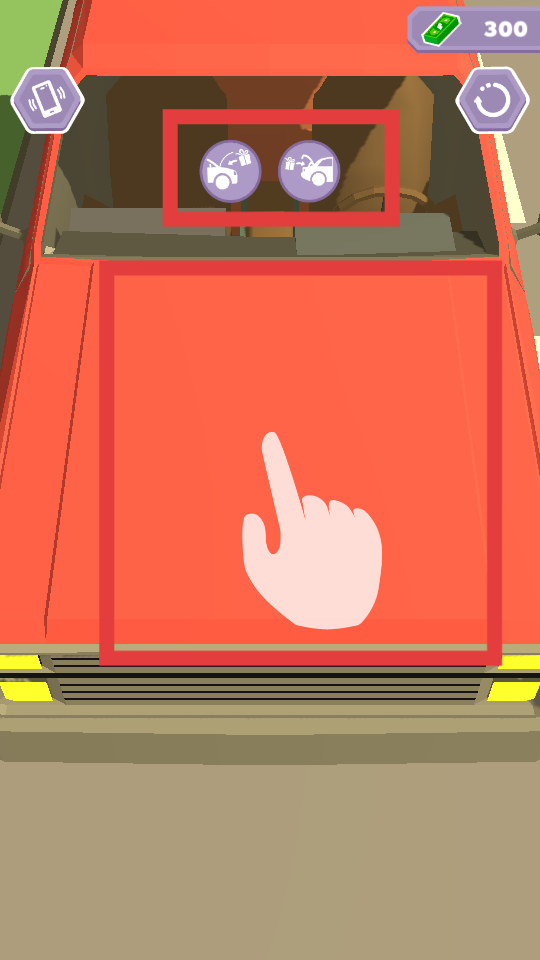 2、接著看到紅色汽車,按照提示點擊汽車部位,同時注意上方的功能按鈕,進行初步的汽車操作,推進游戲進程。