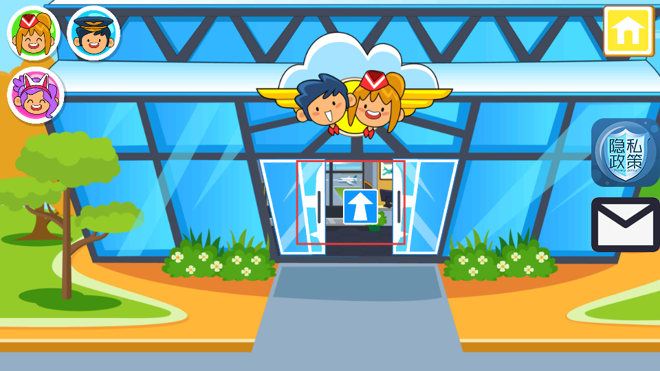 2、來(lái)到機(jī)場(chǎng)建筑前,點(diǎn)擊帶有向上箭頭標(biāo)識(shí)的入口,進(jìn)入機(jī)場(chǎng)內(nèi)部,可探索機(jī)場(chǎng)里的不同區(qū)域,體驗(yàn)機(jī)場(chǎng)相關(guān)場(chǎng)景和互動(dòng)。