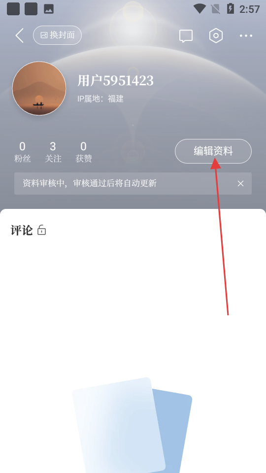 2、在個(gè)人主頁界面找到并點(diǎn)擊編輯資料按鈕,這個(gè)功能通常用于讓用戶修改和完善個(gè)人資料,點(diǎn)擊后即可進(jìn)入編輯狀態(tài),開始對(duì)個(gè)人資料進(jìn)行調(diào)整。