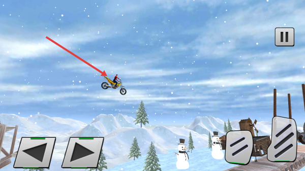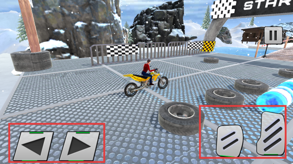 2、在游戲過程中通過屏幕左下角的左右方向按鈕來控制自行車的前進(jìn)方向,利用屏幕右下角的加速和剎車按鈕調(diào)節(jié)自行車的速度。