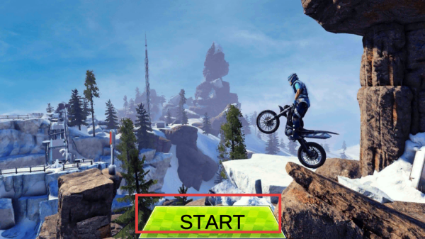 1、玩家下載游戲之后然后點(diǎn)擊進(jìn)入在游戲初始界面,點(diǎn)擊START按鈕,進(jìn)入鐵桿自行車特技游戲關(guān)卡。