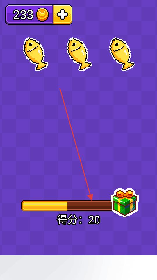 4、完成美食挑戰(zhàn)后回到游戲主界面,會看到得分提升到20,同時界面展示出金色小魚分數(shù),為后續(xù)的美食挑戰(zhàn)積累成果。