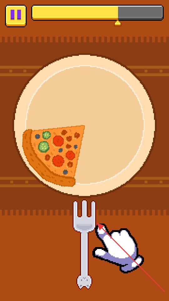 2、在美食挑戰(zhàn)場景中根據(jù)提示,點擊叉子,讓叉子叉到披薩,準備叉起披薩,進行下一步的美食互動。