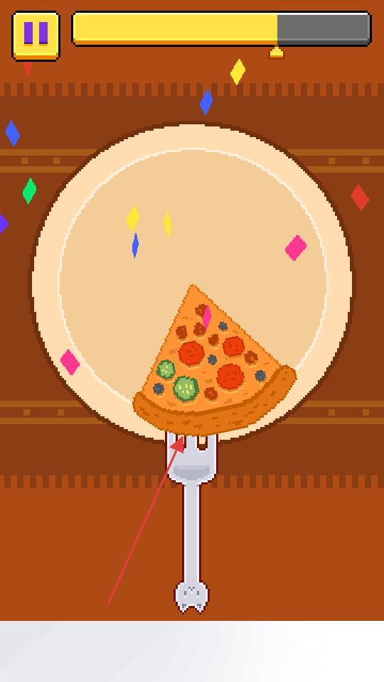 3、叉起披薩后完成這一美食操作,此時得分會有所增加,繼續(xù)進行美食挑戰(zhàn),爭取更高得分。