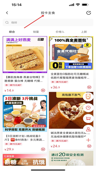 2、控卡主食分類,有燕麥谷物棒等商品,主打0脂無糖精高飽腹,適合減肥人群代餐控制熱量。