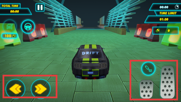2、在游戲過程中利用屏幕左側的左右方向按鈕控制車輛的行駛方向,通過右側的油門和剎車踏板來調節(jié)車速。