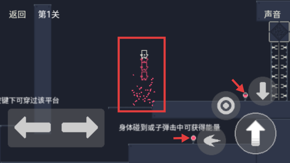 4、關(guān)卡中有粉色能量點,角色身體碰到或被子彈擊中都能獲得能量,移動和攻擊過程中盡量接觸這些能量點,積累能量助力后續(xù)闖關(guān)。