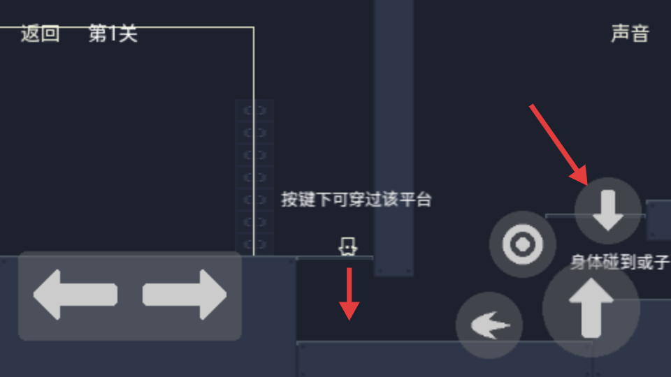 3、有些平臺可在按下向下按鈕時穿過,當(dāng)角色處于平臺上方,按下向下按鈕,角色能穿過平臺到達下方區(qū)域,借助此機制可探索更多關(guān)卡區(qū)域。