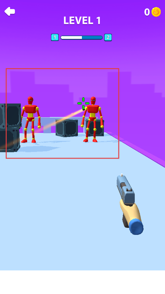3、面對(duì)多個(gè)機(jī)器人敵人時(shí),要快速瞄準(zhǔn),逐個(gè)擊破,利用場(chǎng)景中的箱子等元素,尋找掩護(hù),避免被敵人擊中持續(xù)推進(jìn)關(guān)卡。