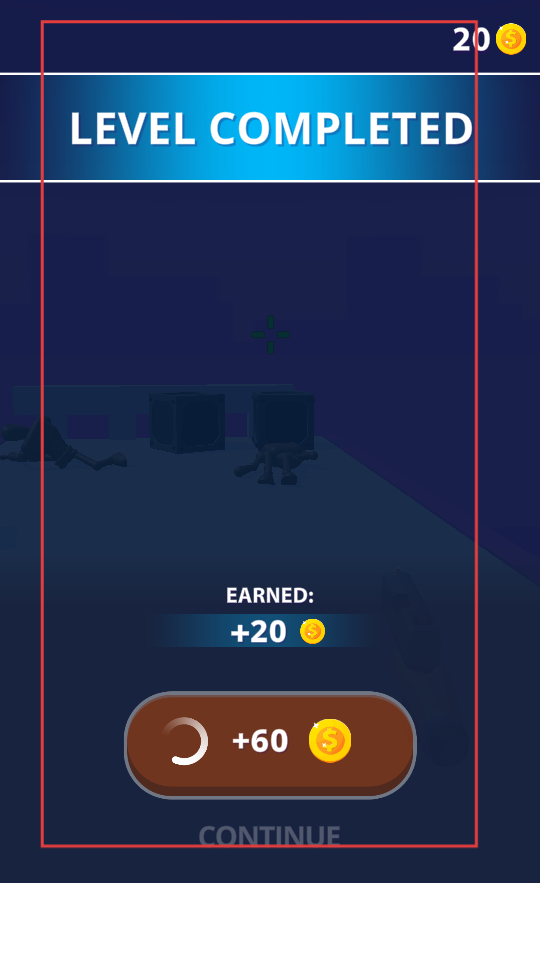 4、成功消滅所有敵人后,關(guān)卡完成,會(huì)顯示LEVEL COMPLETED,并獲得金幣獎(jiǎng)勵(lì),之后可選擇繼續(xù)獲取更多金幣或進(jìn)入下一關(guān)。