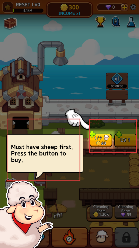 2、根據(jù)提示,需要先購買羊,點擊相應按鈕,花費金幣獲取羊,讓農場擁有基礎的動物,推進農場建設。