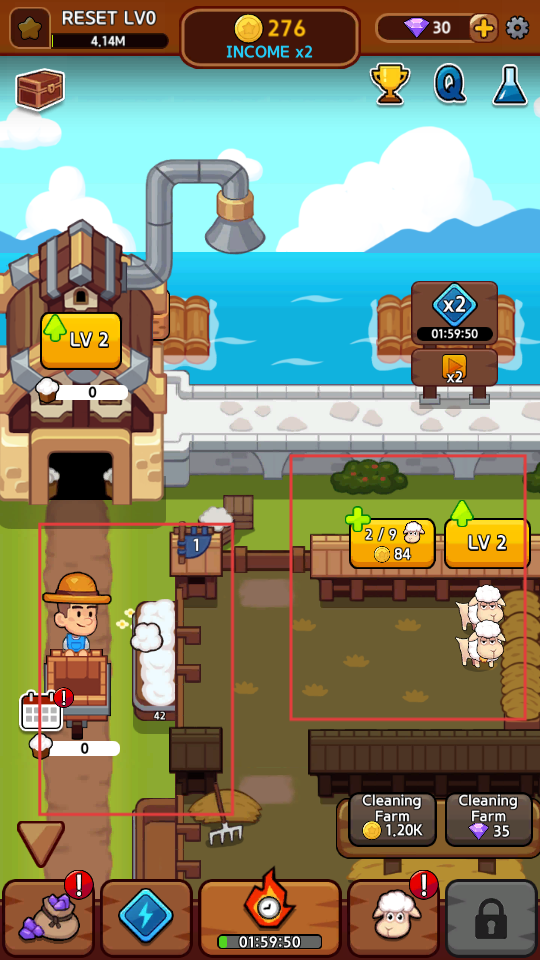 3、有了羊之后,點擊升級按鈕,提升羊的庇護所等級,這樣能讓羊更好地在農場里生活,同時也能獲得更多收益。