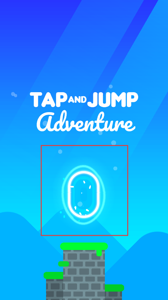 1、進(jìn)入游戲,界面顯示TAP AND JUMP Adventure,點(diǎn)擊藍(lán)色光圈區(qū)域,開始跳躍冒險(xiǎn),在不同平臺間跳躍前進(jìn)。