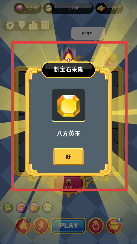 2、合成過程中,會采集到新寶石,如八方黃玉,點擊好確認,繼續(xù)進行寶石合成與收集,豐富寶石種類和等級。