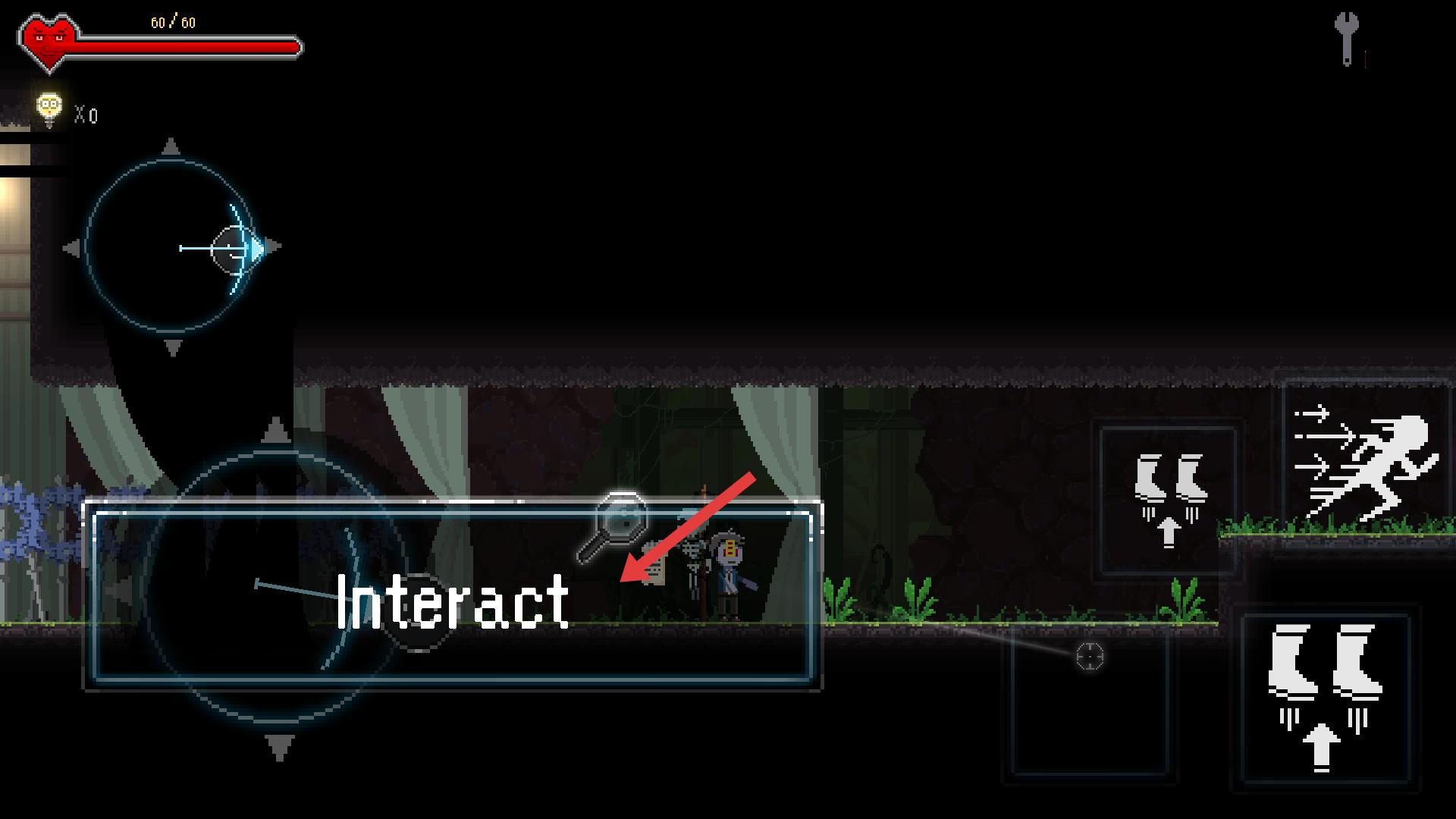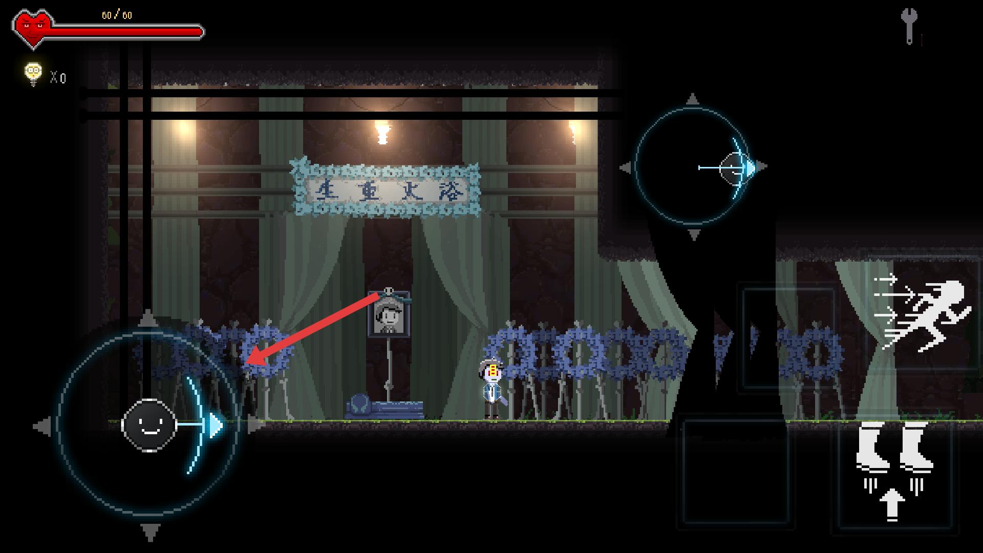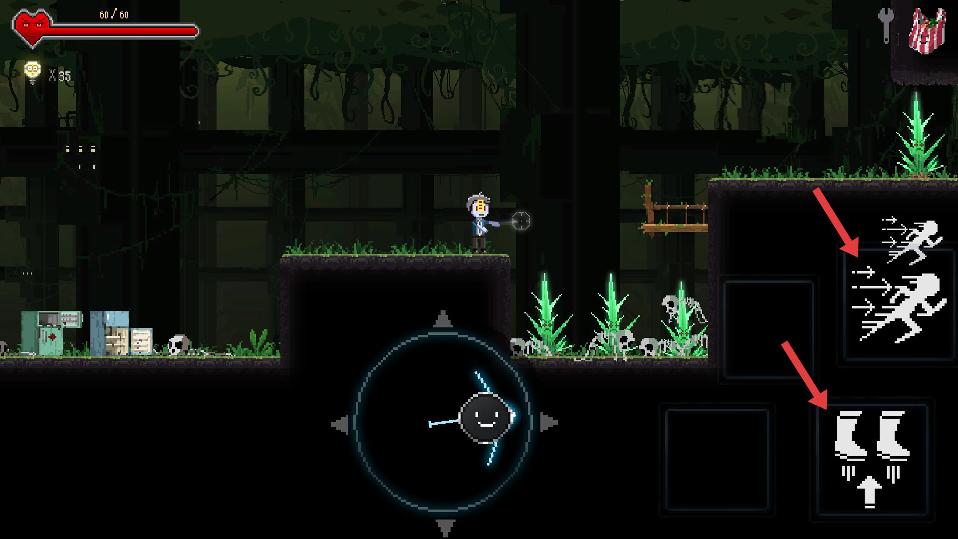4、在游戲場(chǎng)景,利用右側(cè)的移動(dòng)和跳躍按鈕,操控角色移動(dòng)、跳躍,跨越障礙,探索更多區(qū)域,尋找游戲線索。