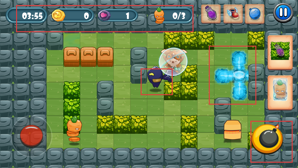 2、放置炸彈后,要及時(shí)避開(kāi)爆炸范圍,炸彈爆炸能消滅敵人、破壞方塊,還可獲得金幣、寶石等獎(jiǎng)勵(lì),助力游戲進(jìn)程。