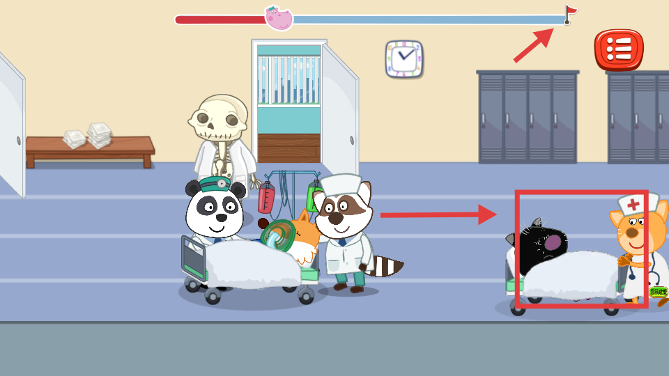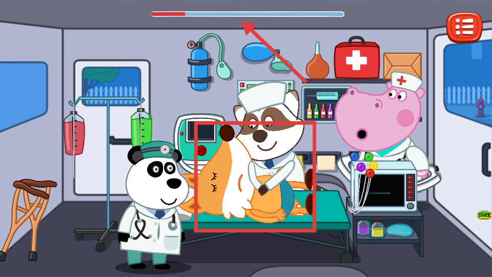 2、例如急救場景會有受傷的動物患者,玩家需要協助醫(yī)生角色對患者進行急救護理,界面上方的進度條會顯示護理的進展情況。