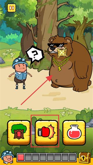 4、繼續(xù)在場景中探險(xiǎn)遇到新的對象,如戴著金鏈的熊時(shí),根據(jù)下方的道具選項(xiàng),選擇對應(yīng)的道具,點(diǎn)擊道具與進(jìn)一步探索獲取寶物的可能。