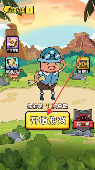 1、進(jìn)入游戲看到帶有開始游戲按鈕的界面,點(diǎn)擊該按鈕,進(jìn)入探險(xiǎn)場景,操控角色開始在場景中移動(dòng),準(zhǔn)備進(jìn)行尋寶探險(xiǎn)。