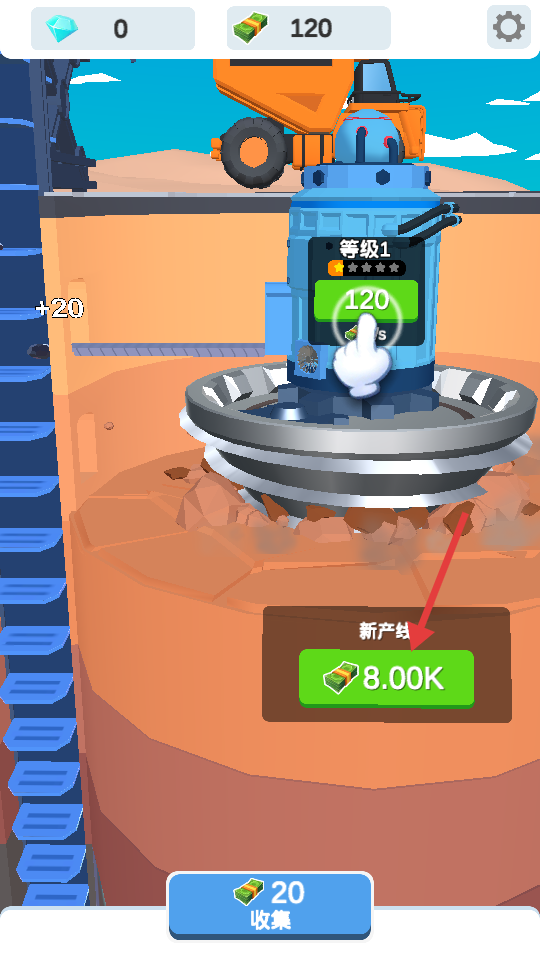 3、可點(diǎn)擊標(biāo)有綠色區(qū)域升級(jí)設(shè)備提升挖掘效率,點(diǎn)擊新產(chǎn)線按鈕花費(fèi)金錢能解鎖新生產(chǎn)線,即可拓展挖掘作業(yè),能夠快速積累資源用于升級(jí)或解鎖新內(nèi)容。
