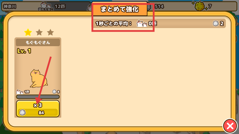 4、強(qiáng)化界面可對貓咪進(jìn)行強(qiáng)化操作,,花費(fèi)相應(yīng)云朵進(jìn)行強(qiáng)化,強(qiáng)化后能提升貓咪等級,界面顯示每秒平均收益等數(shù)據(jù),強(qiáng)化貓咪可增加收益,助力貓町更高效地發(fā)展。