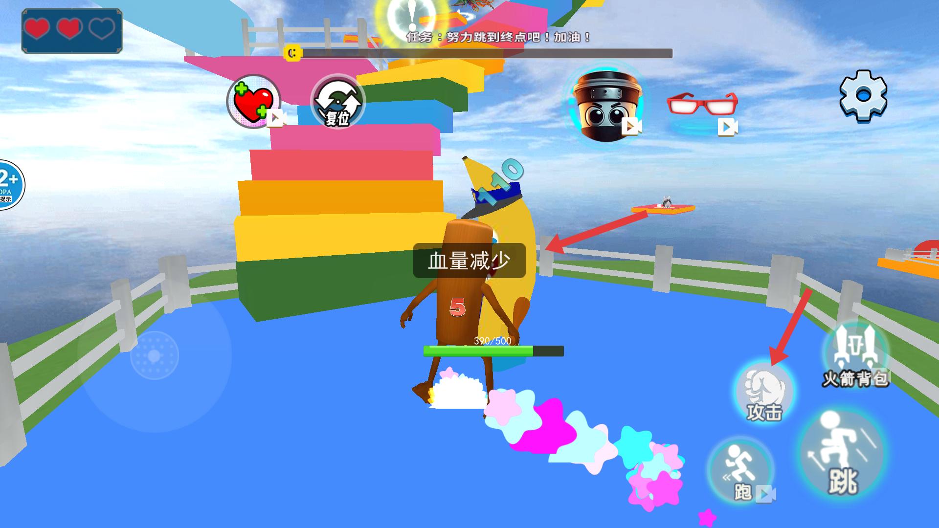 4、在后續(xù)路徑,會遇到敵人,此時點擊右側(cè)【攻擊】按鈕,對敵人發(fā)起攻擊,若血量減少,及時調(diào)整策略,繼續(xù)向終點前進(jìn)。