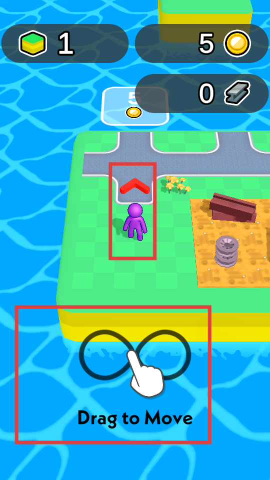 1、首先要操控角色移動(dòng),通過(guò)拖拽界面能控制紫色小人在島嶼上移動(dòng),按照箭頭指示方向,前往不同區(qū)域開啟對(duì)島嶼的探索,尋找可交互的資源或地點(diǎn)。