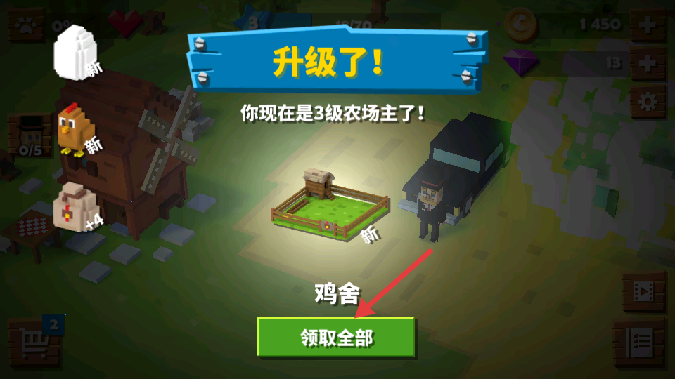 4、完成任務(wù)等會(huì)獲得經(jīng)驗(yàn)提升農(nóng)場(chǎng)等級(jí),升級(jí)后會(huì)解鎖新的內(nèi)容,點(diǎn)擊領(lǐng)取全部可獲取升級(jí)帶來的獎(jiǎng)勵(lì),進(jìn)一步豐富農(nóng)場(chǎng)的功能與玩法。