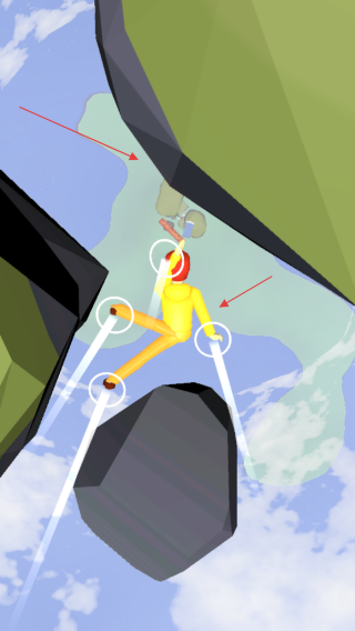 1、在跳傘過程中通過操控角色的四肢等部位,調(diào)整角色在空中的移動方向,避開周圍的巖石等障礙物,朝著目標區(qū)域前進。