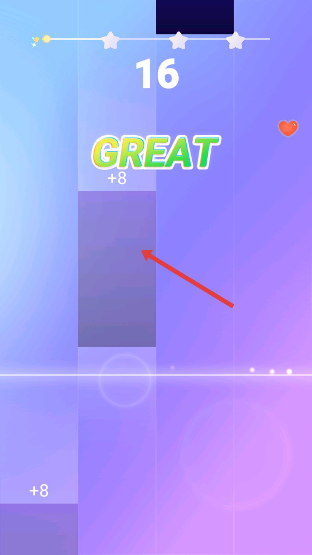 2、演奏時屏幕會下落音符塊,要在音符塊到判定線時精準(zhǔn)點擊或操作,成功操作會顯示【GREAT】,得分?jǐn)?shù),提升演奏評價。