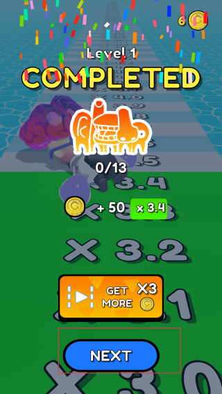 4、成功到達(dá)賽道終點(diǎn)后,會(huì)顯示LEVEL COMPLETED關(guān)卡完成,此時(shí)可以點(diǎn)擊NEXT按鈕進(jìn)入下一個(gè)關(guān)卡。