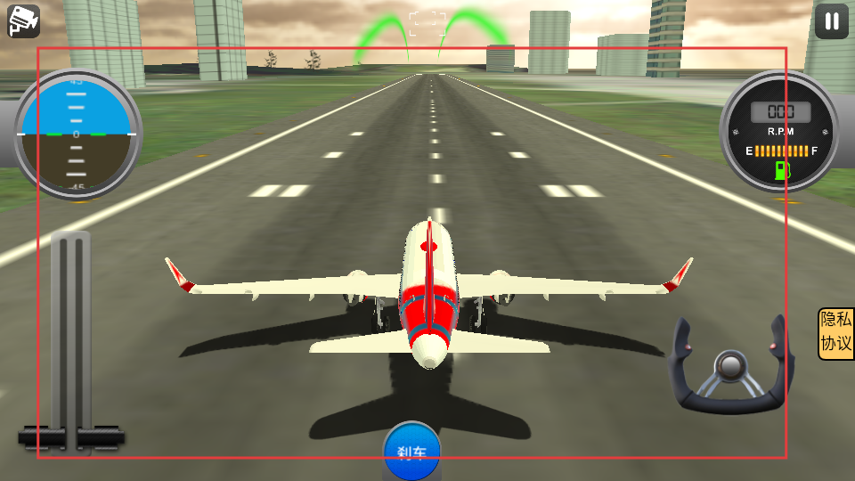 4、支付成功后就正式進(jìn)入游戲駕駛界面,畫面中能看到跑道、儀表盤和操作按鈕,玩家可以通過(guò)操控方向盤、剎車等按鈕,駕駛飛機(jī)完成關(guān)卡任務(wù)。