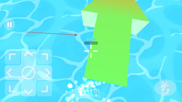 2、進(jìn)入關(guān)卡后,通過屏幕左側(cè)的虛擬方向按鍵,控制游戲角色移動,瞄準(zhǔn)平臺上的洞口或目標(biāo)區(qū)域,讓角色跳入水中。