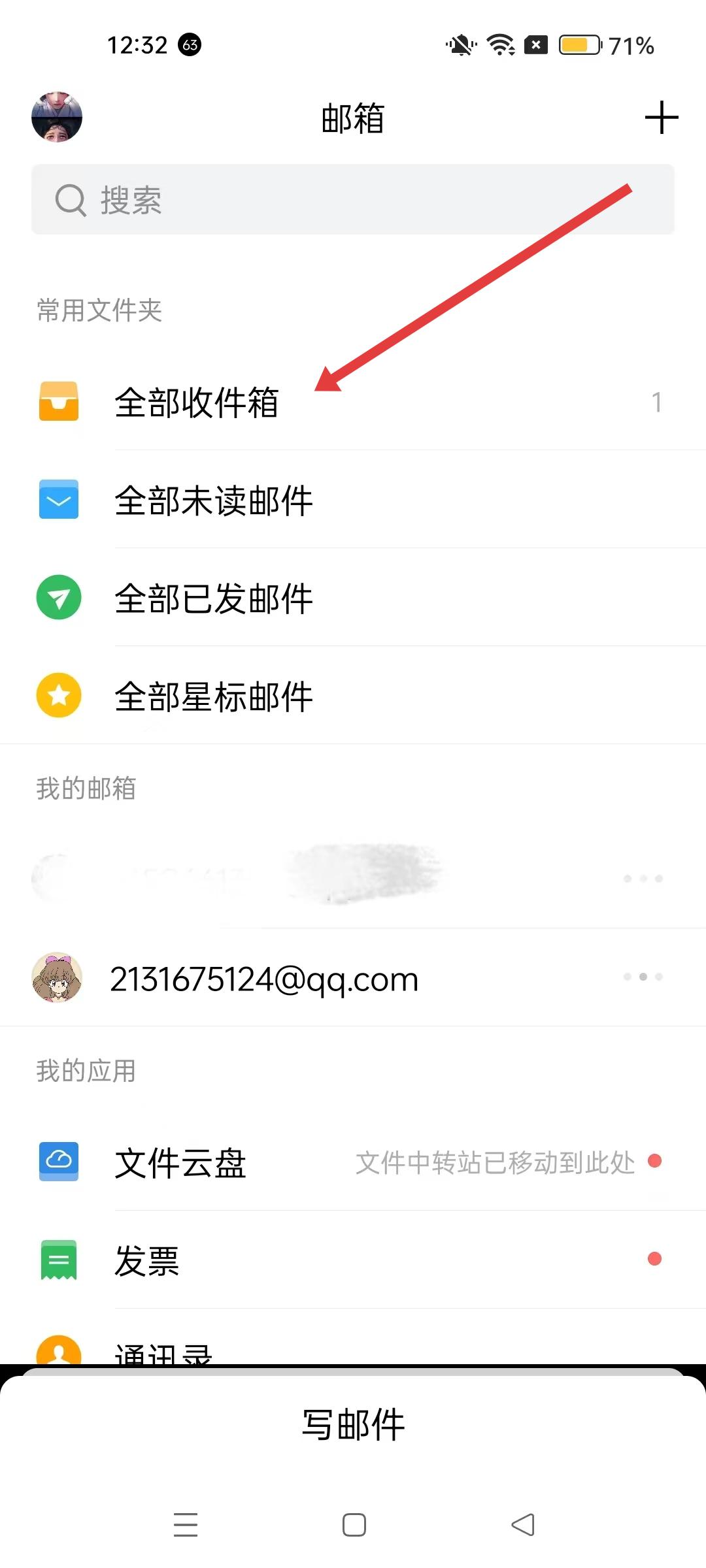 1、進入QQ郵箱主界面,點擊全部收件箱,進入收件箱頁面,可查看所有收到的郵件。