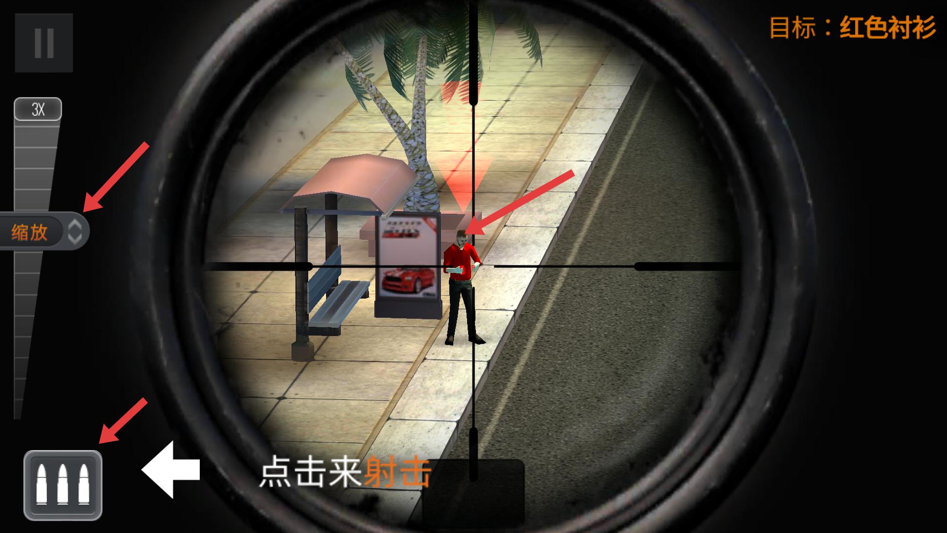 3、瞄準(zhǔn)目標(biāo)后,可利用左側(cè)縮放功能調(diào)整視野,讓目標(biāo)更清晰,然后點(diǎn)擊射擊,完成擊殺目標(biāo)的任務(wù)。