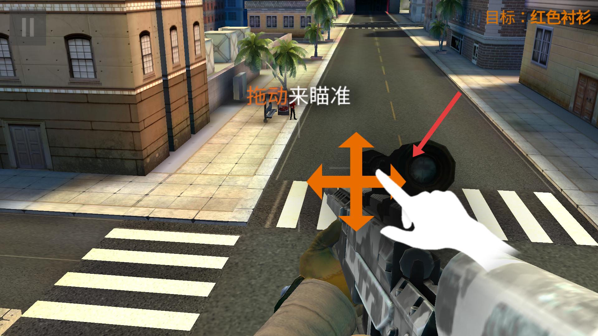 2、進(jìn)入任務(wù)后,按照提示拖動(dòng)瞄準(zhǔn)鏡,調(diào)整視角,瞄準(zhǔn)目標(biāo),為精準(zhǔn)射擊做好準(zhǔn)備。