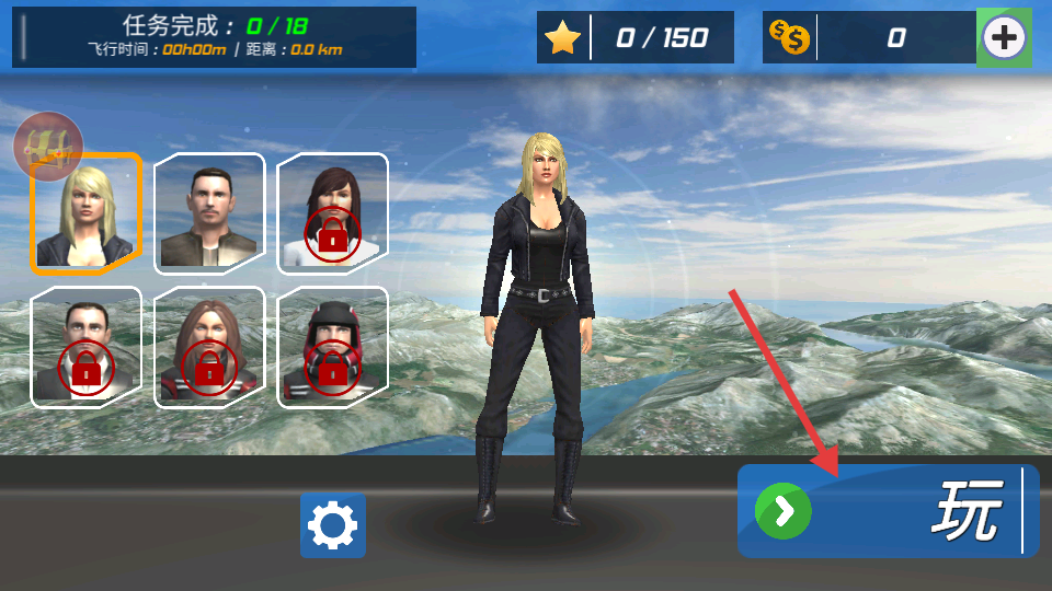 1、進入模擬飛行駕駛游戲,在角色選擇界面可挑選已解鎖的角色,選好后點擊玩按鈕,就能進入游戲場景,開啟飛行駕駛之旅,準備執(zhí)行飛行任務(wù)。