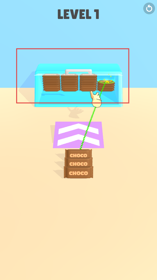 3、當(dāng)容器被巧克力填滿,完成度達(dá)到要求后,關(guān)卡通關(guān),此時點擊屏幕,即可繼續(xù)挑戰(zhàn)下一個關(guān)卡。